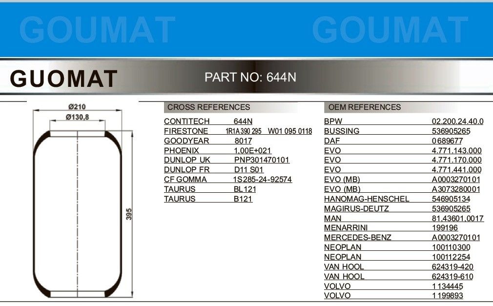 1R1A390295 FIRESTONE Bus Air Spring GOODYEAR 8017 Untuk NEOPLAN 100110300